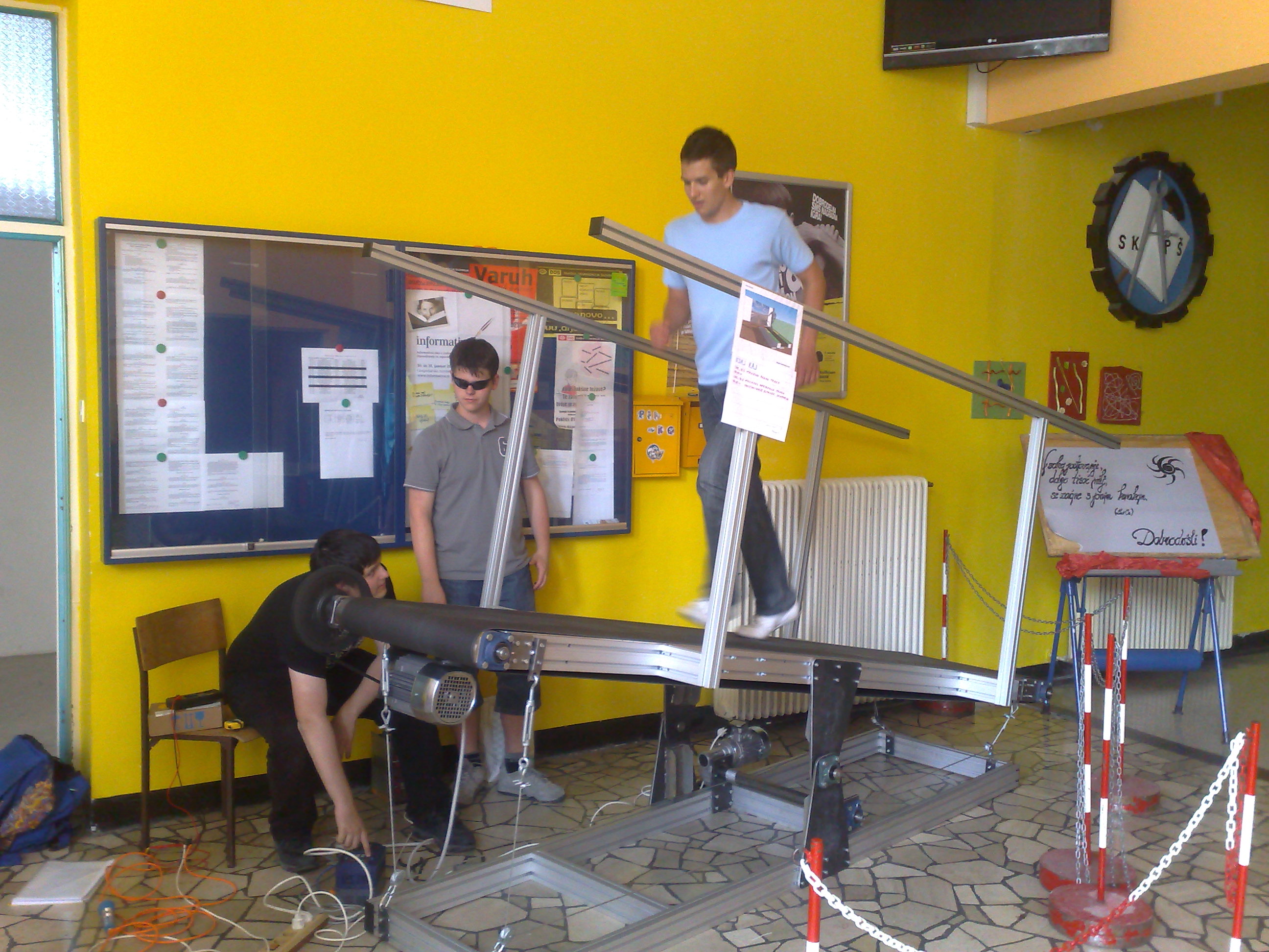 Od skromnih začetkov – spoznavanja in uporabe gradnikov električnega pogona, osnov merjenja, krmiljenja, regulacije … je prišla na vrsto predstavitev pred šolsko publiko. Sledili so prvi preizkusi.